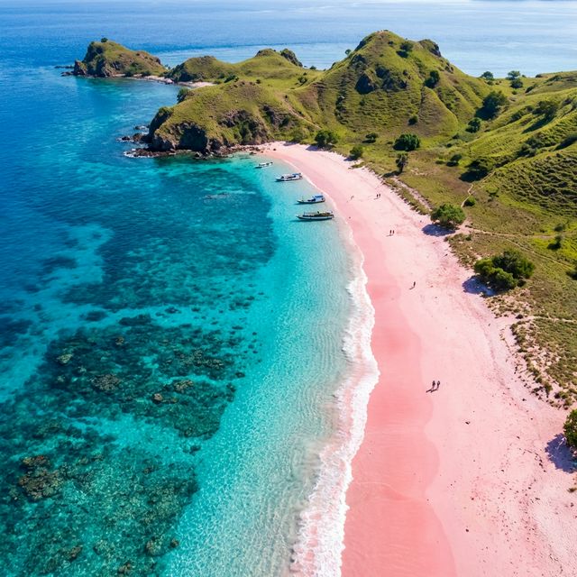 Pink Beach (Pantai Merah) gets its distinctive rosy hue from crushed red coral mixed with white sand. It's one of only seven pink-sand beaches on the planet, and the snorkeling just offshore is world-class.